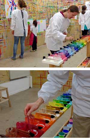 Die gemalten Bilder verbleiben im Malort, damit sie vor nachträglicher "Bewertung" durch sich selbst oder durch andere geschützt werden.